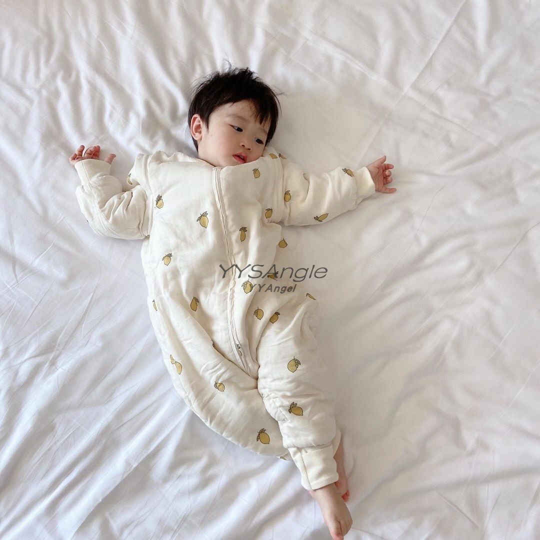 Ins baby sleeping bag autumn and winter thin quilted warm four seasons baby gauze thickened 3 children split legs anti-kick quilt artifact