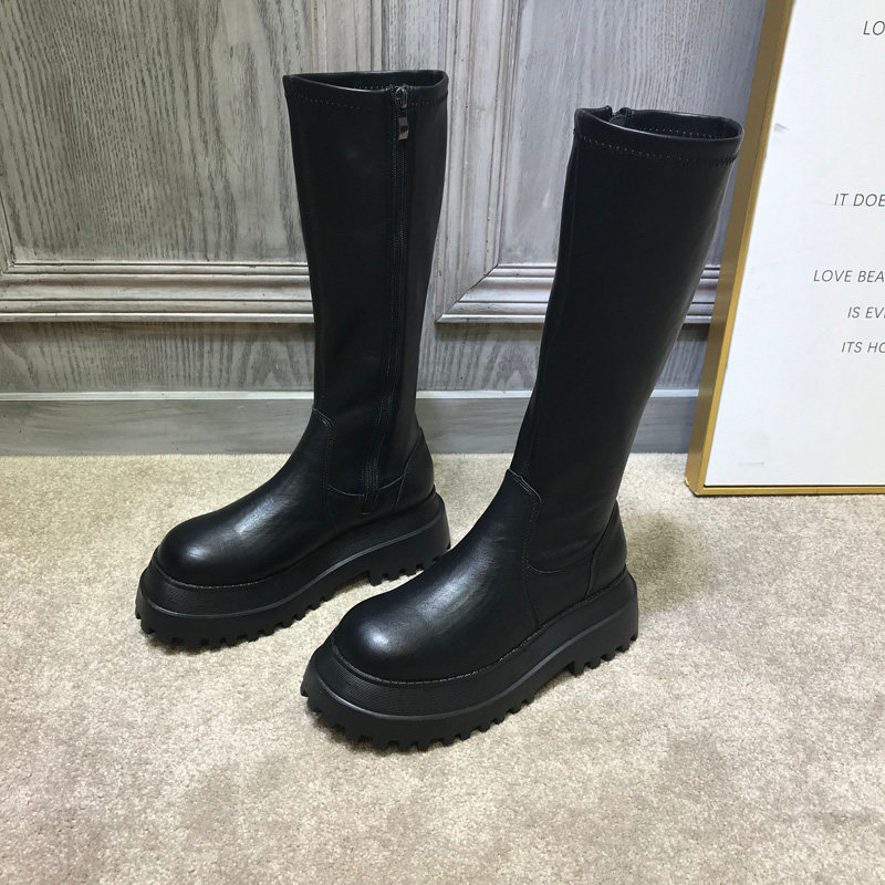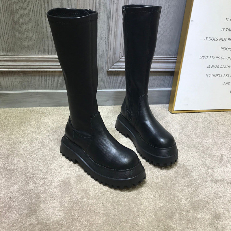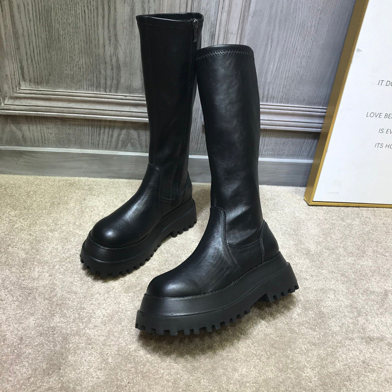 2021 European station autumn and winter new platform thick-soled elastic boots tall Martin boots thin boots boots women's fashion