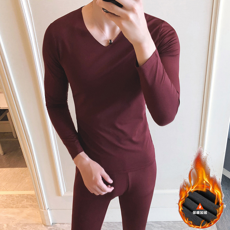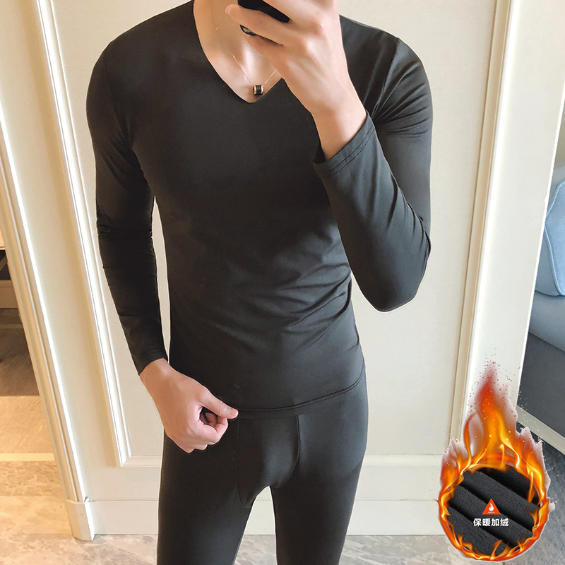 Winter men's autumn clothes sanitary pants V collar tight without marks and velvety heat coat pants high elastic and thin individuality wave