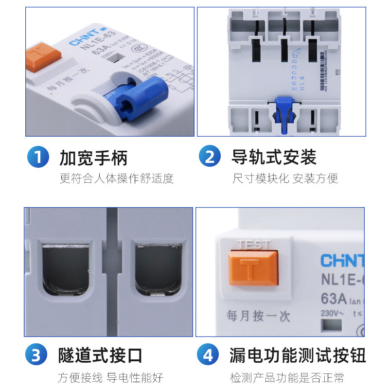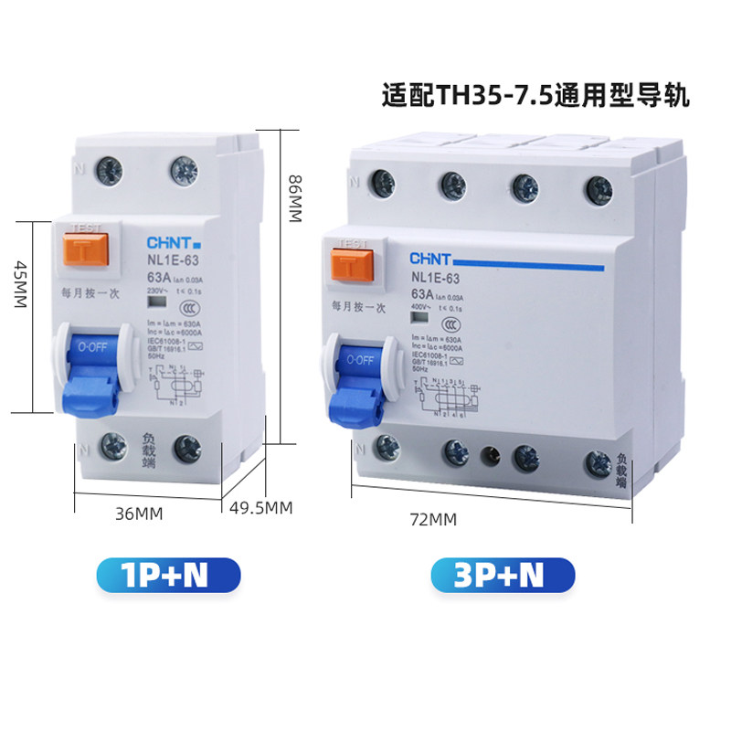 Zhengtai NL1E-63 earth leakage protection breaker 3P N25A40A63A home switch three-phase four-4