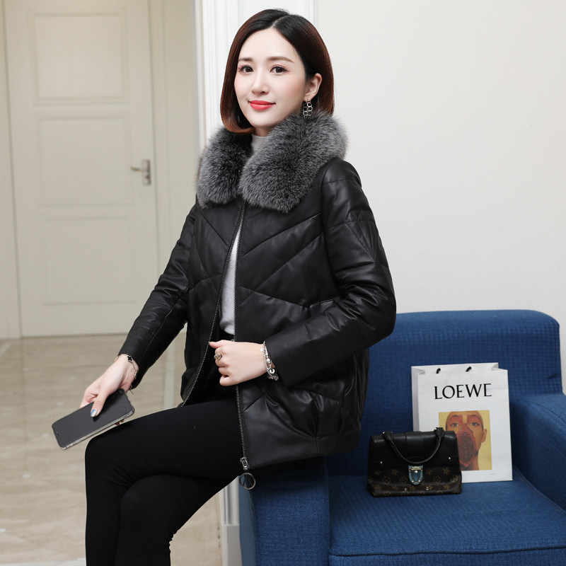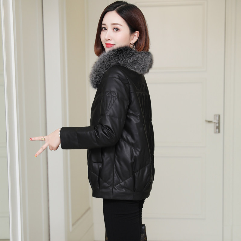 Clear Barn Handling Genuine Leather Down Clothing Woman Short style Winter Plus Suede Thickened Leather Heining Sheep Leather Jacket Leather Grass Jacket