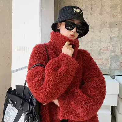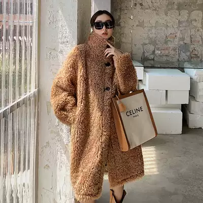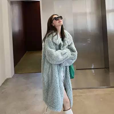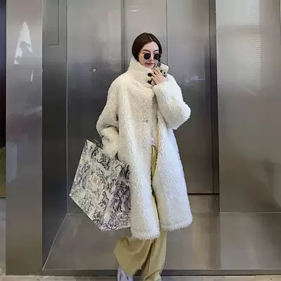 Imported cashmere coat female long version 2021 Winter new fur one lamb fur coat fashion Young