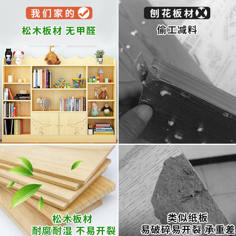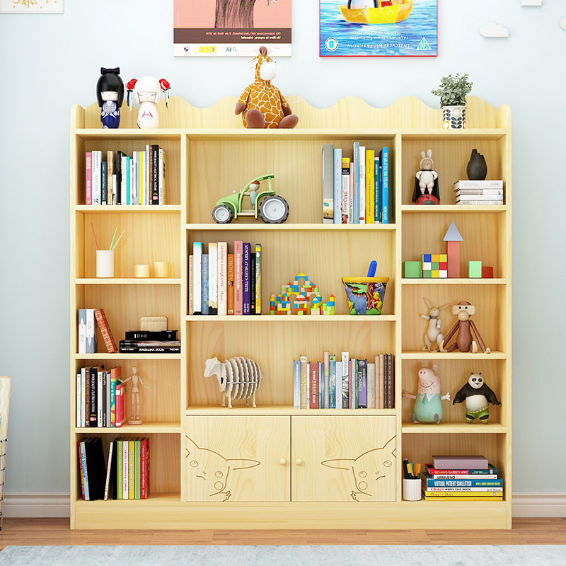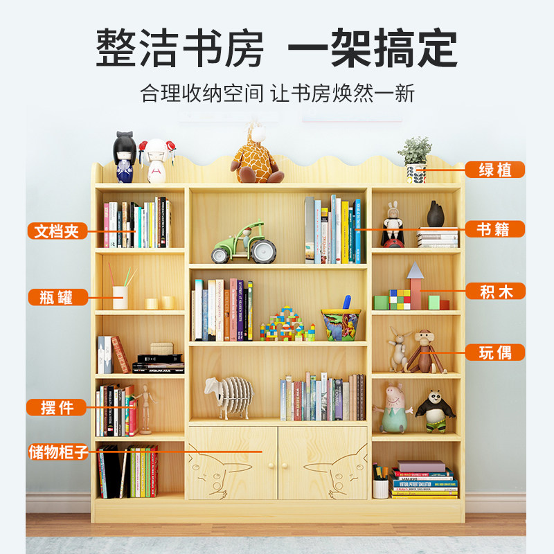 Children's multi-layer bookshelf Simple log bookcase Solid wood student bookcase Full solid wood living room floor-to-ceiling combination shelf