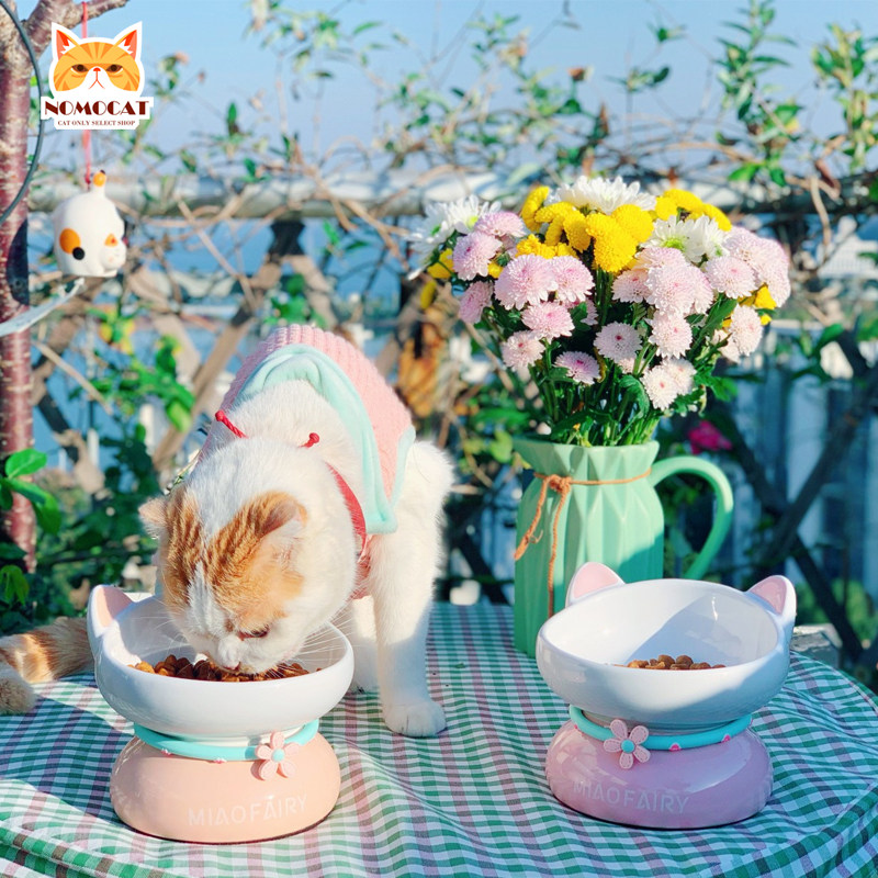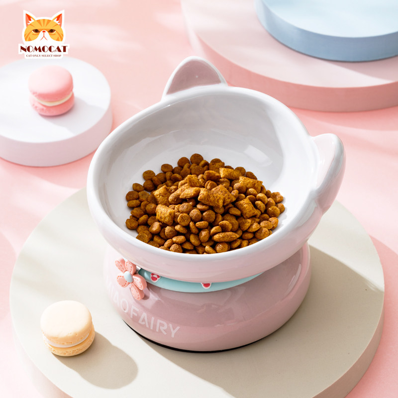 Meow Fairy Ceramic Cat Bowl Protects Cervical Oblique Dog Food Bowl Canned Bowl Water Bowl Prevents Spilling Pet Bowl Cat Food Bowl