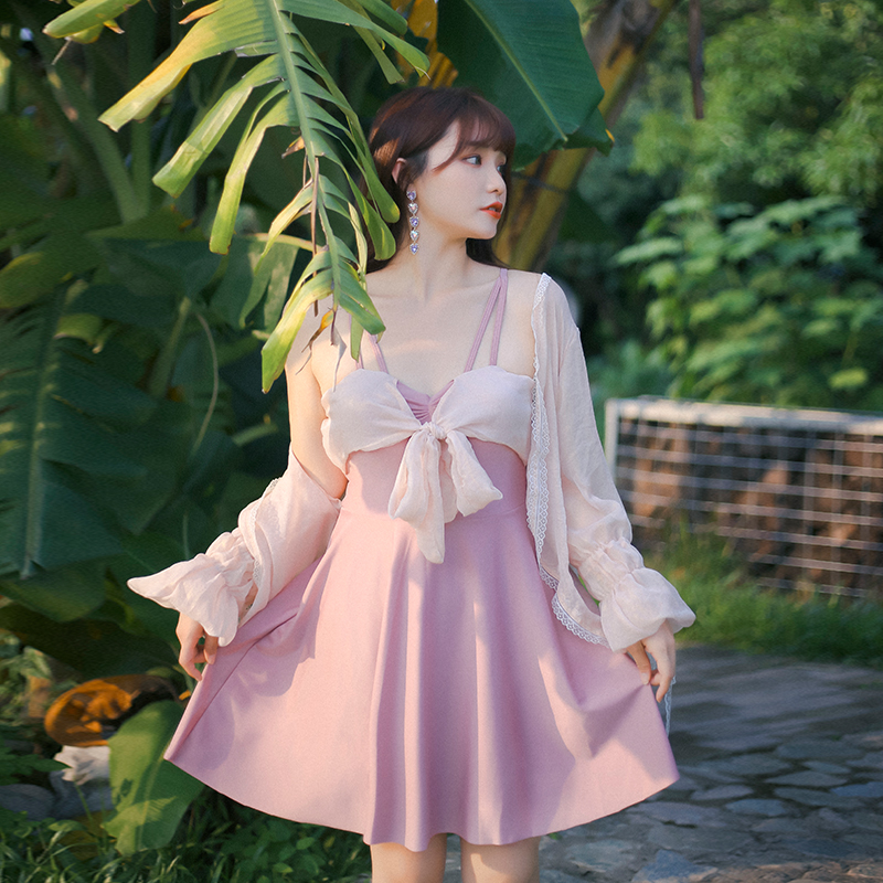 Microfat large size swimsuit woman fat mm200 catty Belly Button Slim Two-piece Three Sets Spa South Korea Little Fragrant Wind Swimsuit