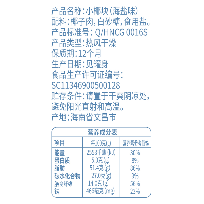 Chunguang Food Hainan Fresh Coconut Roasted Copra Crispy Sea Salt Snack Specialty