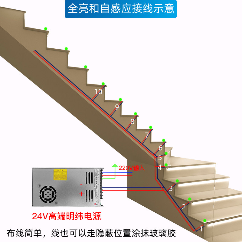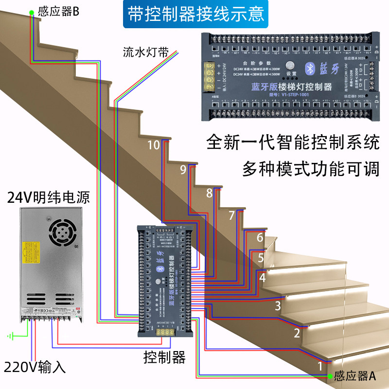 LED net red stair light Intelligent tracking light Running water step foot light Controller Step light with human body sensor light