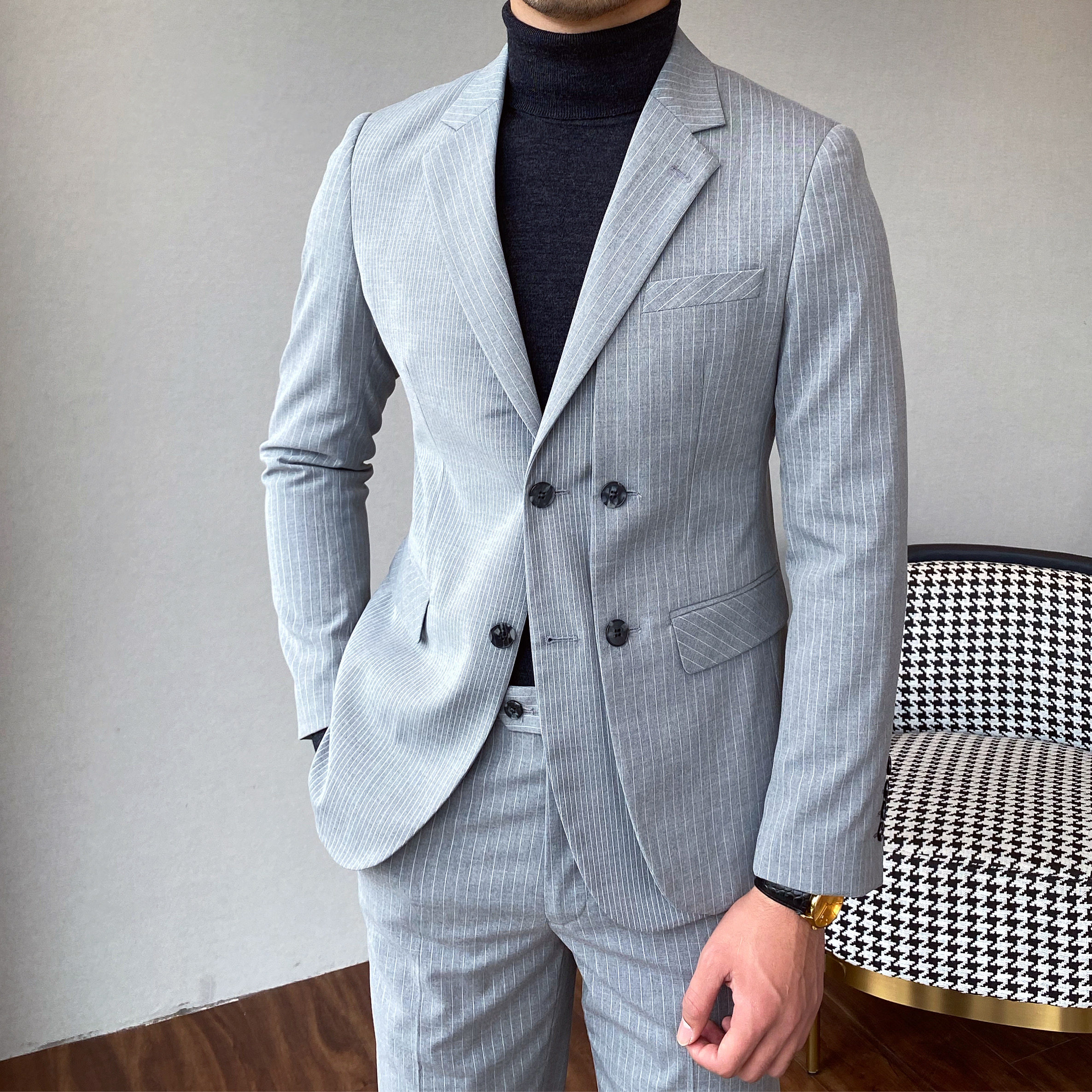Mr. Lusan homemade fashion Men's banquet temperament stitching personality striped suit suit suit Korean slim suit