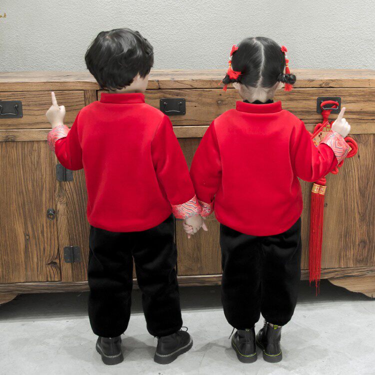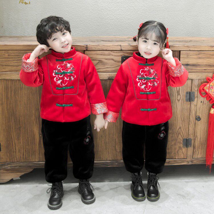 Baiyenfu Tang Costume Girl Hanfu Chinese Wind Baby Thickened Festive New Year Dress Suit for the Year of the Dress Costume