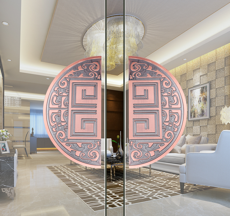 Glass door handle door handle sliding door Chinese aluminum plate antique brass hotel custom sliding door pairing engraving