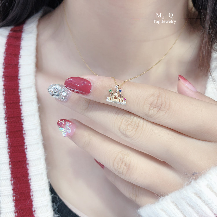 (Original) 18K Gold Sky Castle Pendant 15 Points Real Diamond Ruby Sapphire Necklace Certificate Delivery