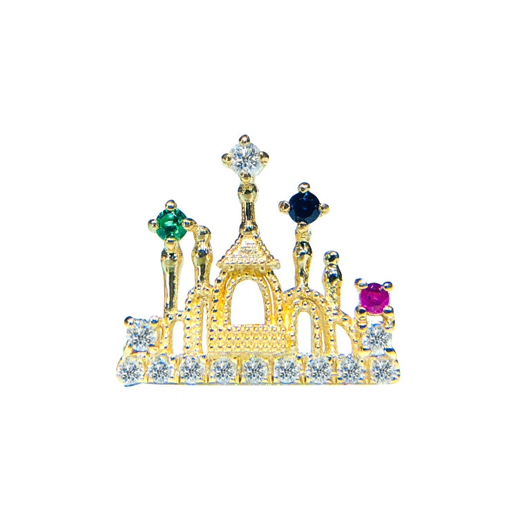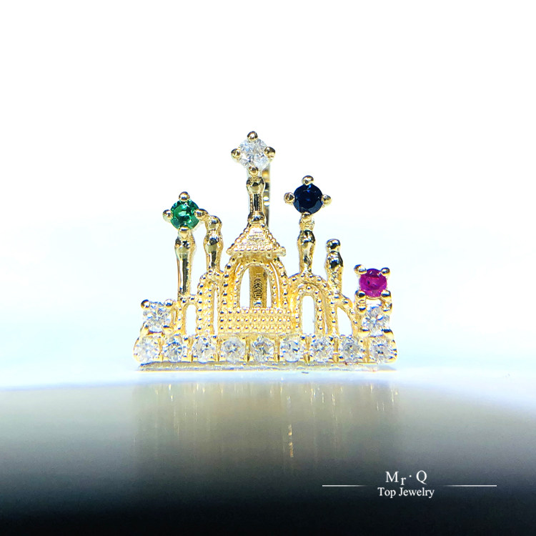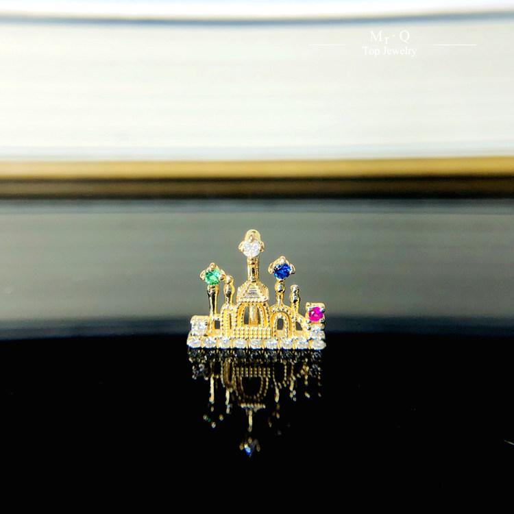Single Castle Pendant Castle Pendant with 18K Japanese Kajia Cross Chain