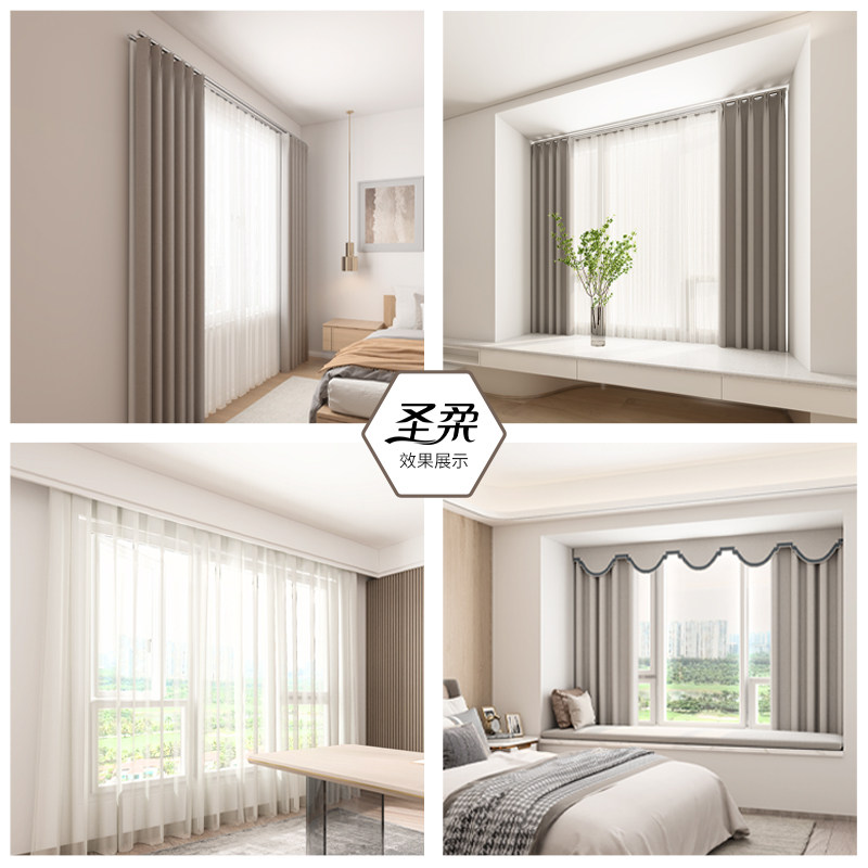 Holy Soft Aluminum Alloy Curtain Track Silent Straight Rail Square Slide-Window Top Fitting Side Mounted Floating Window Curtain Rod Single Double Track