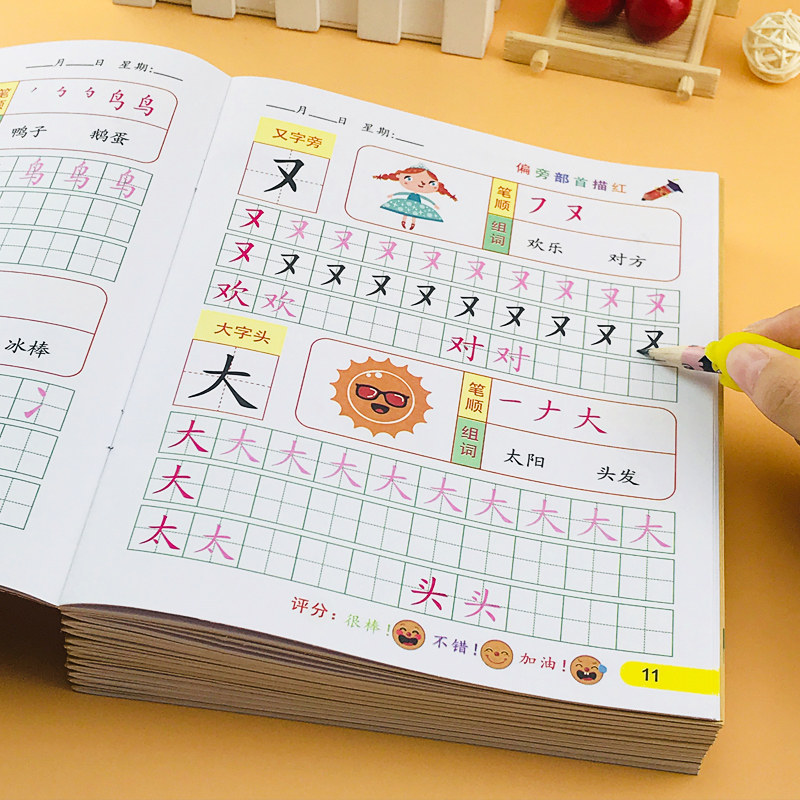Children's practice copybook strokes and strokes in order to trace the red book with pencils