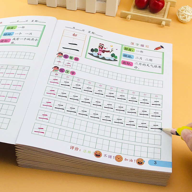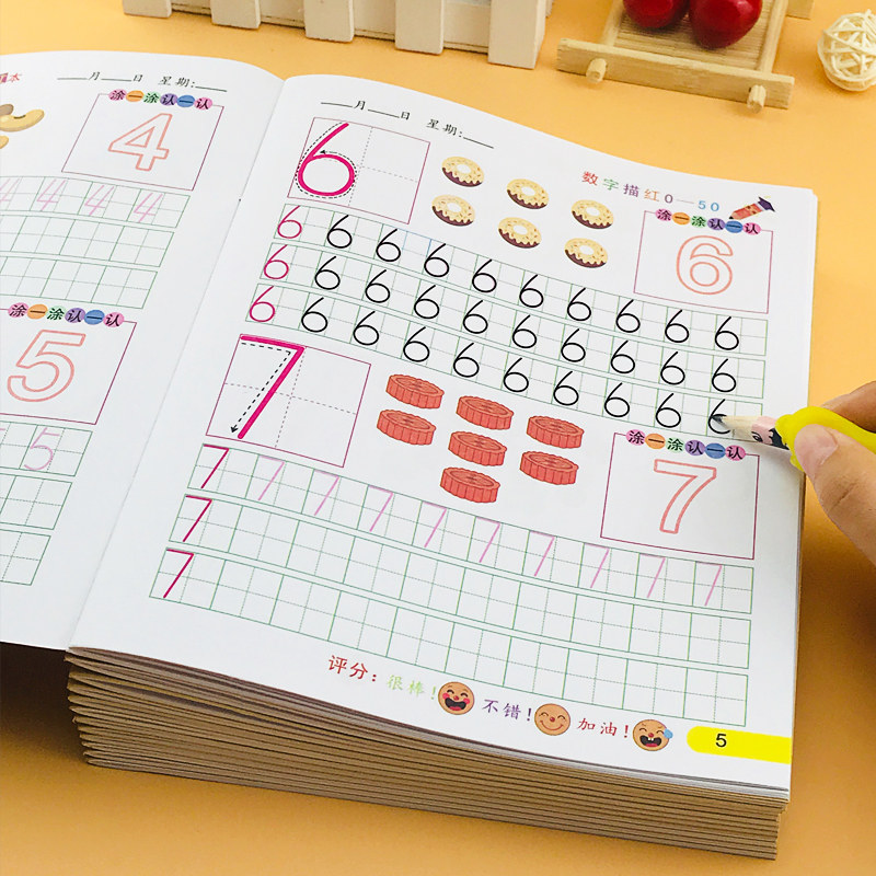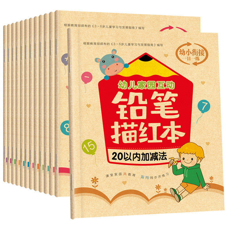 A full set of 12 copies (10 pencils and 1 pen holder) Numbers 0-10 Numbers 0-20 Numbers 0-50 Numbers 0-100 Pinyin 1 (single finals initials)