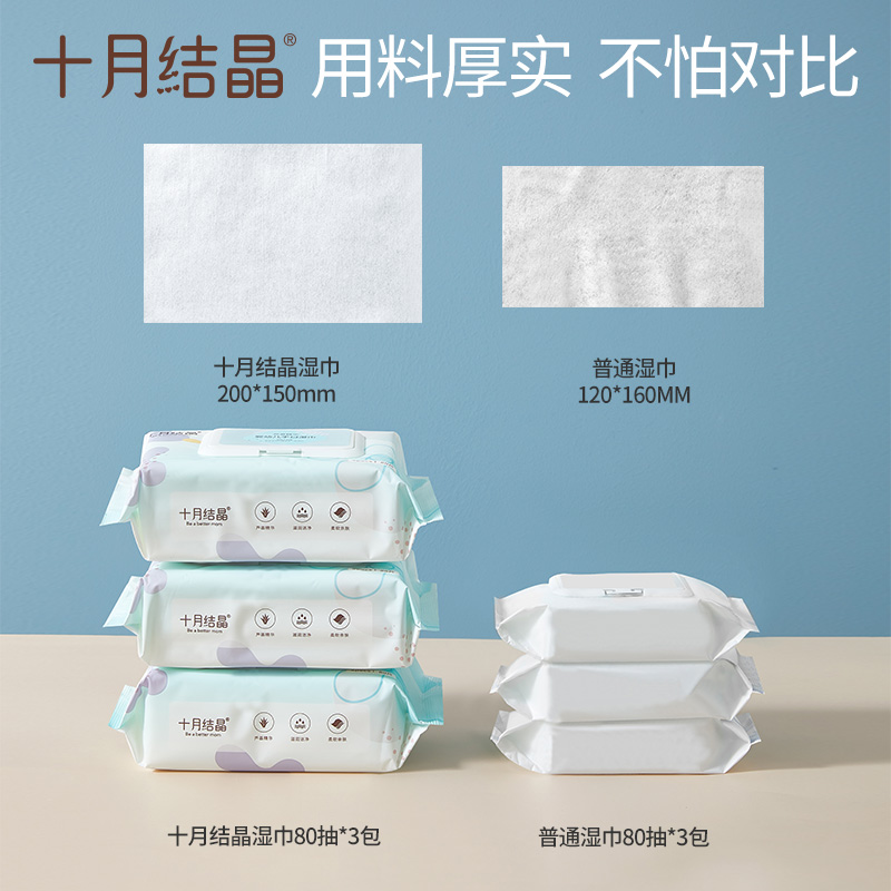 October crystallization baby wipes newborn hand mouth special wipes baby with cover wet wipes 80 pumps * 10 packs