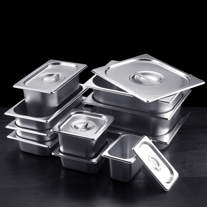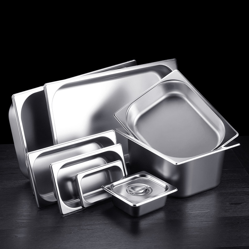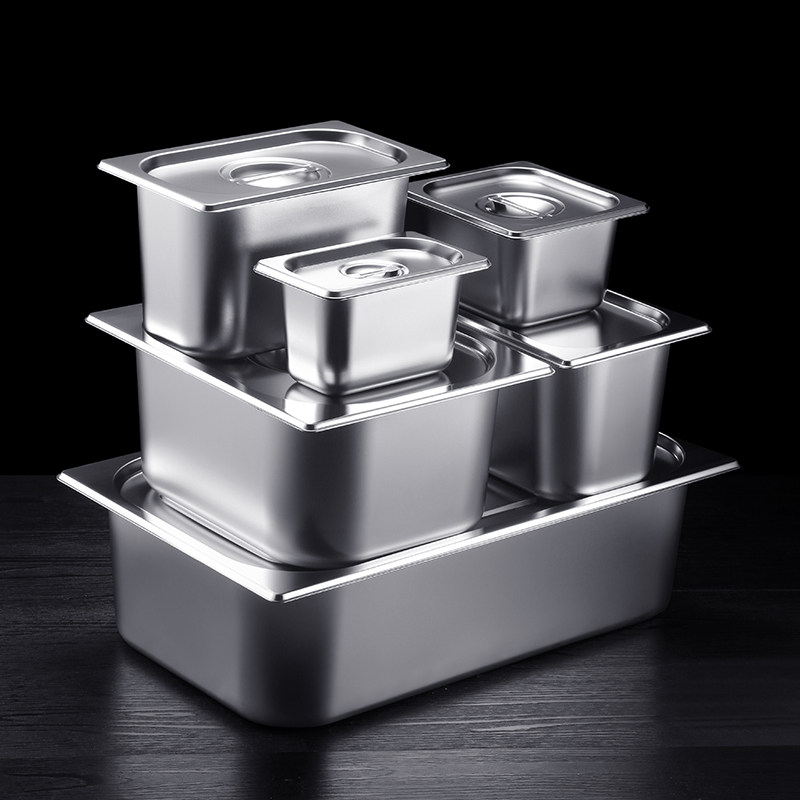 Thickened stainless steel serving basin with lid Malatang display cabinet selection basin Serving box Fractional plate Rectangular basin