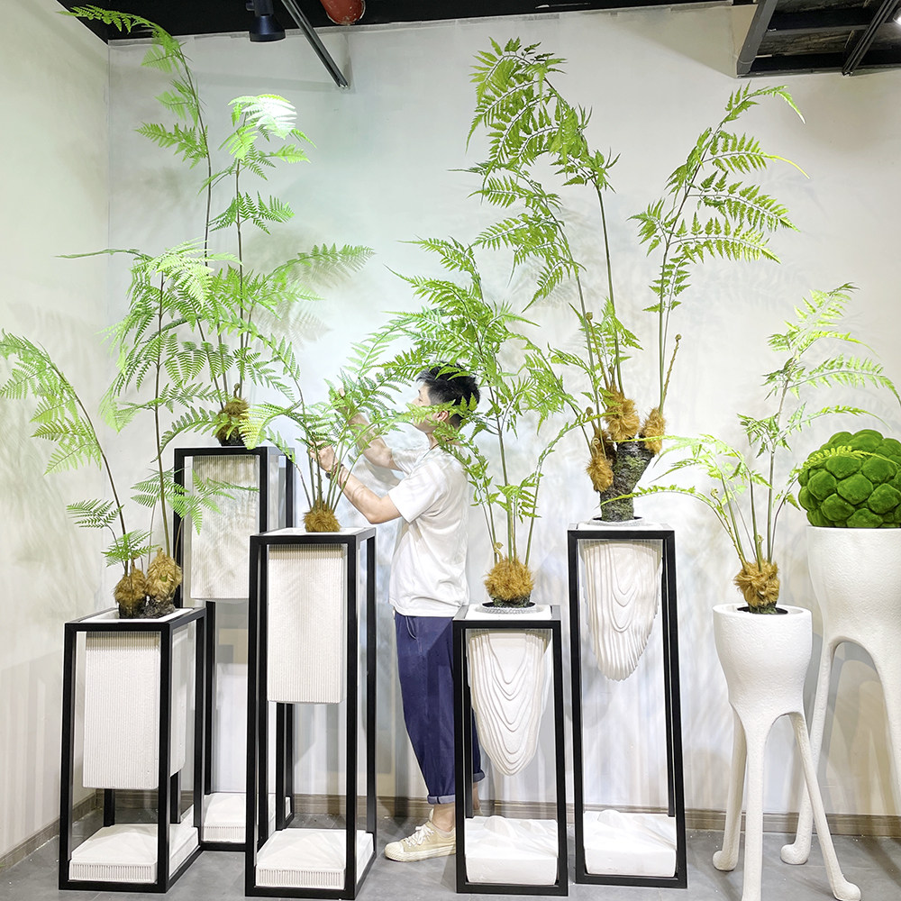 Simulation Fern Grass Tree Potted Nature Forest Ensemble Golden Silk Meditation Monkey Head Fern Green Plant Decorated Patio Landscape Furnishing-Taobao