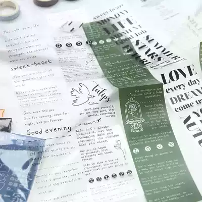 Literary PET text tape English Japanese font ins wind verse long strip sticker Salt hand account material sub-packaging
