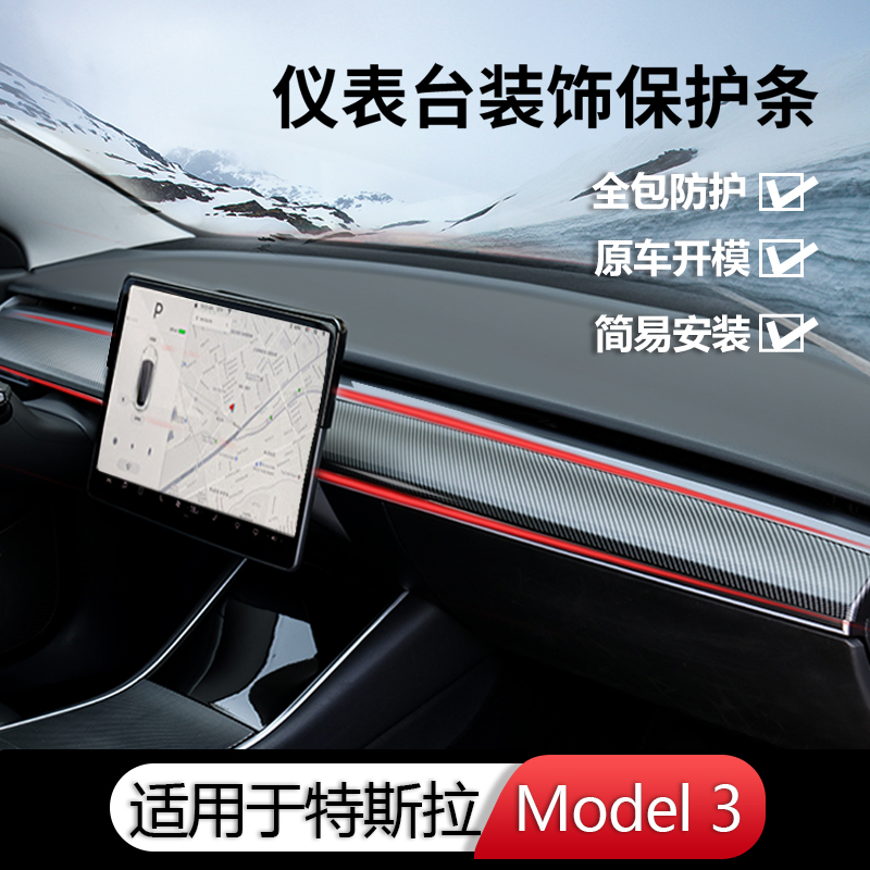 Applicable to Tesla Model3 Y dashboard decoration strip central control protection panel accessories modification artifact
