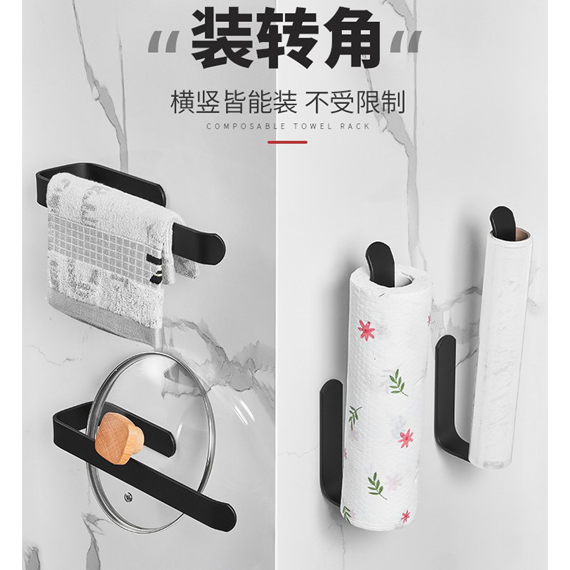 Kitchen paper towel rack wall-mounted preservation film shelve free of punching drum toilet paper rack suction oil paper rack hook