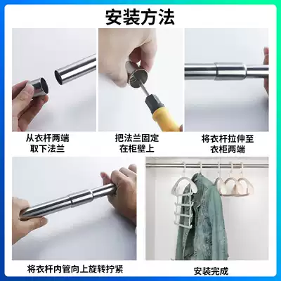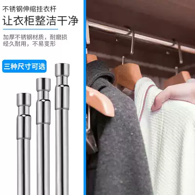 Stainless steel telescopic wardrobe hanging clothes rod thick hanging rod wardrobe telescopic rod accessories retractable clothes rod