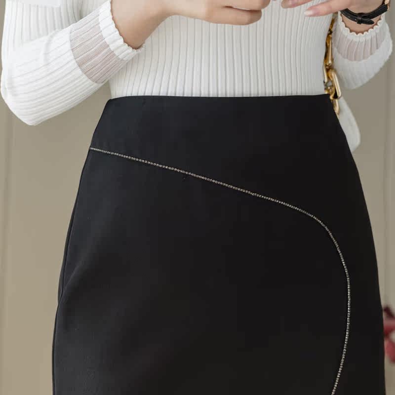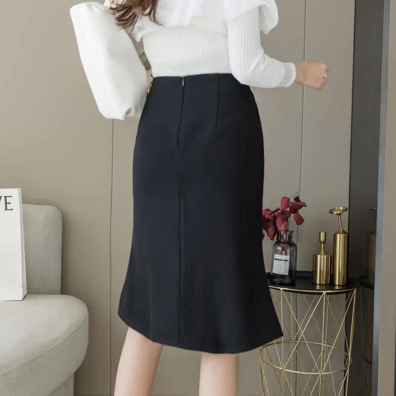 Fishtail Skirt Half Body Dress Woman Spring Autumn 2021 New High Waist A Character Lotus Leaf Side Medium Long Version Packs Hip Skirt Professional Skirt