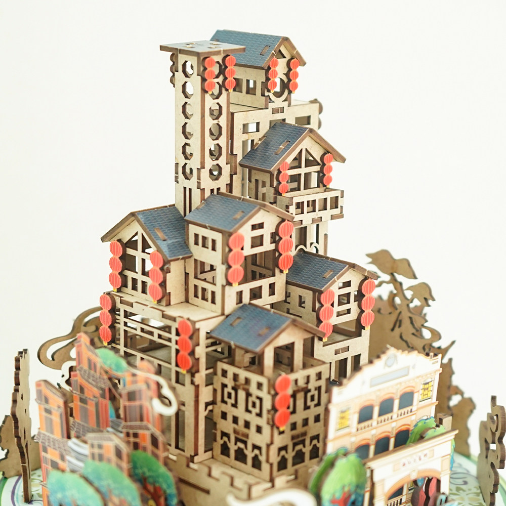Light Rotation ) City Series - Mountain City Memory DIY Music Box Spicy Chongqing Creative Memory with Handing Gift