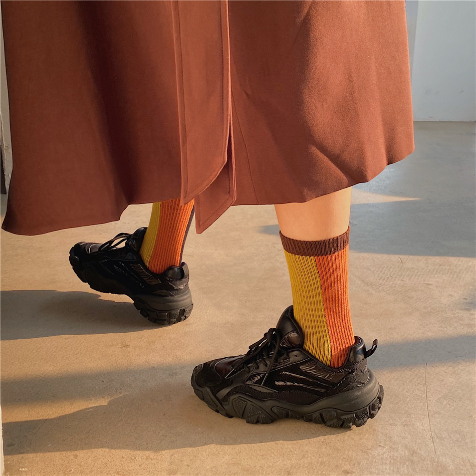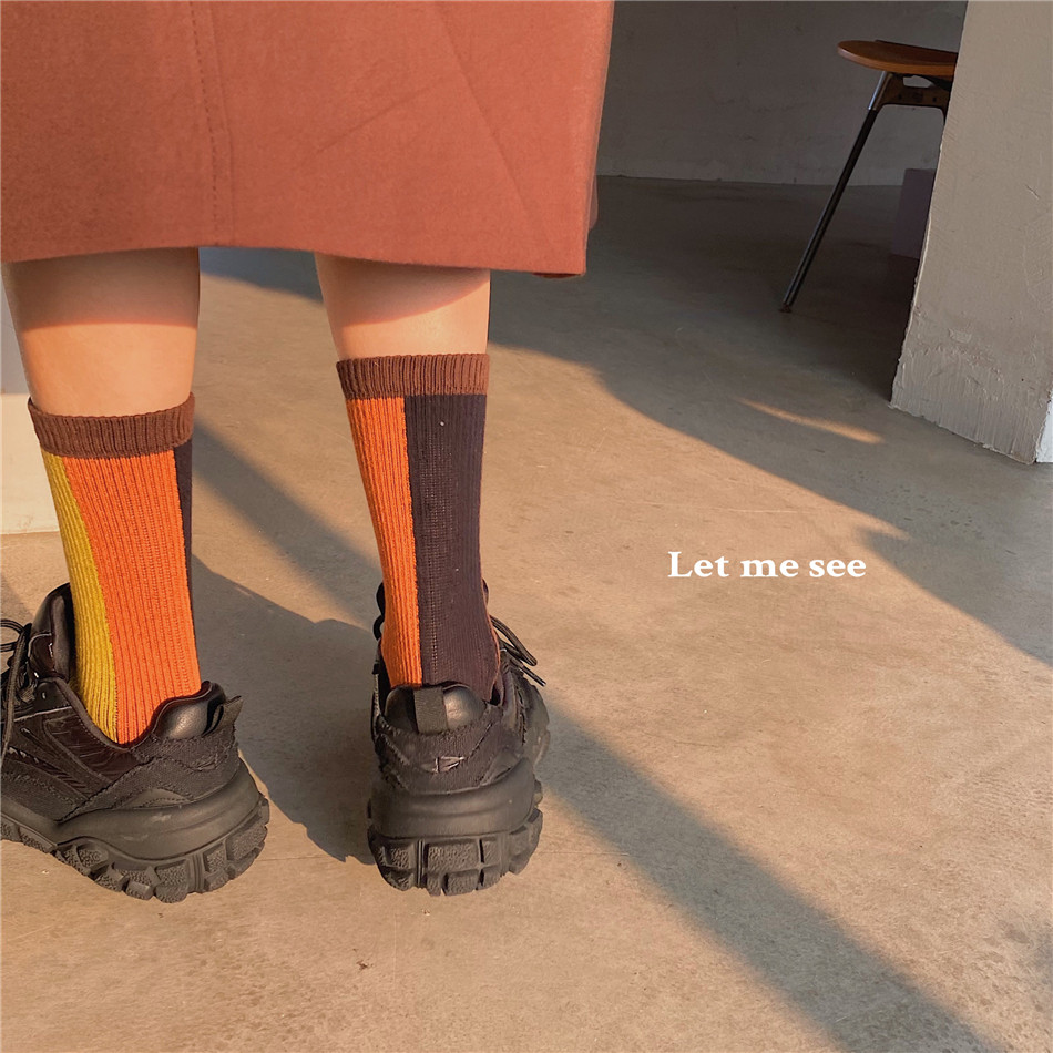 LET ME SEE Collared Stockings Color Socks Children's Chains Chains Sox Socks Autumn Winter Cotton Nets Red and American Street Brief