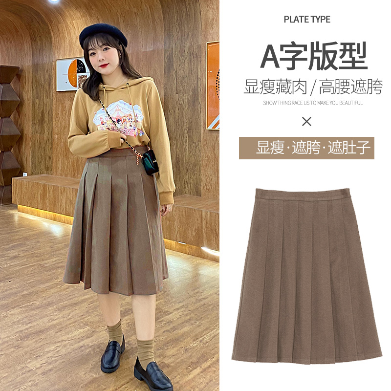 Multi Treasure Large Size Women's Dress Fat mm2021 Year Autumn Winter Dress New 100 Pleat Girl Sensation Medium Long Half Skirt A dress