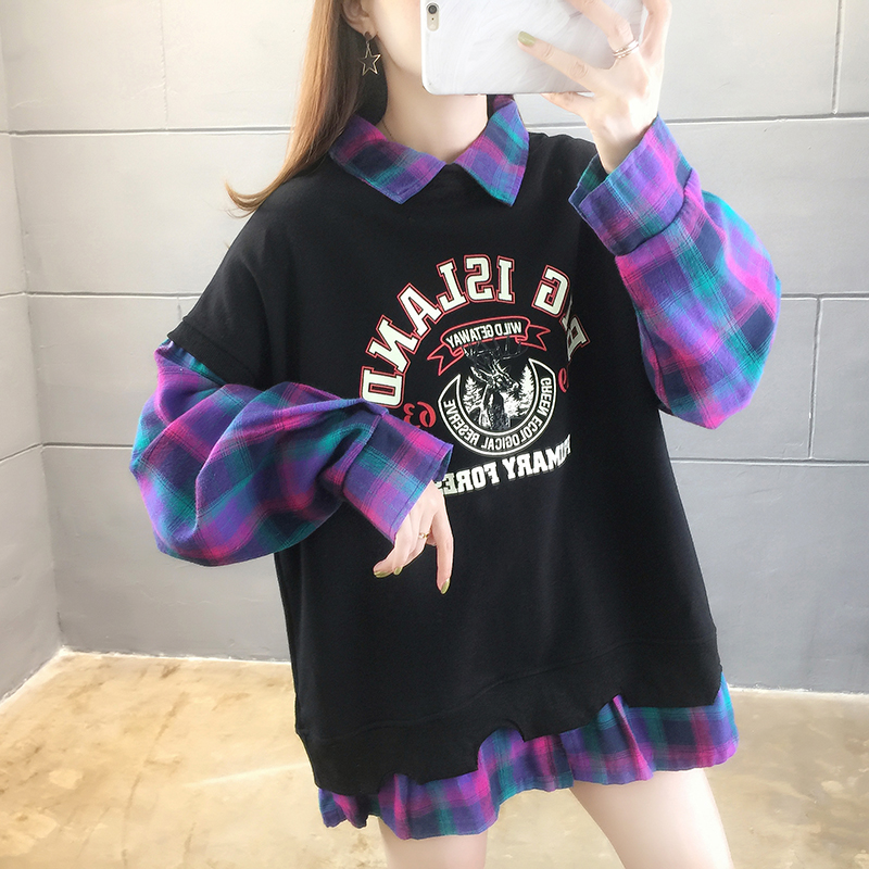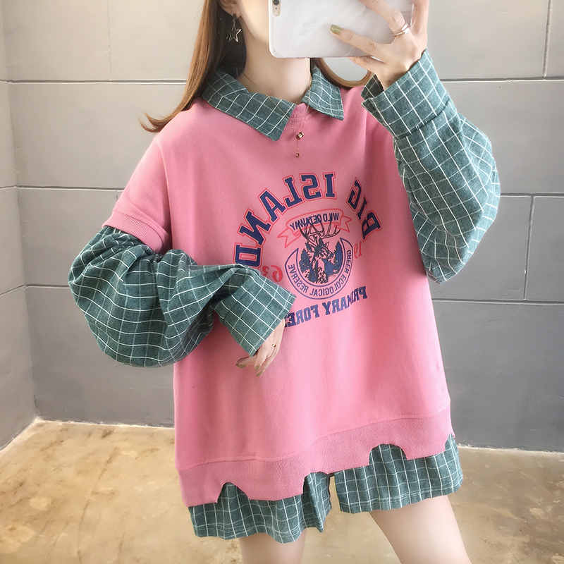 Spring and autumn gestation with lazy wind in the middle of a long version of fake two POLO collar long sleeves slim fit for a thin coat of clothing and women