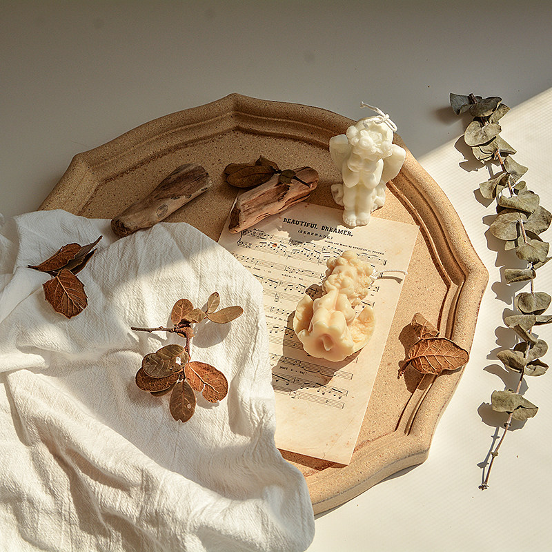 Color vintage octagonal wooden tray Jewelry plate Decorative decoration plain billet bed and breakfast ins wind photography photo props