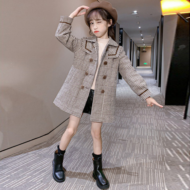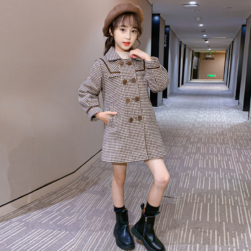 Girls winter coat woolen coat Western style 2022 new middle-aged children 12 girls Korean version mid-length top