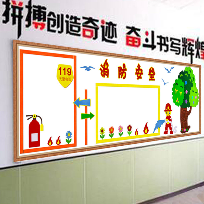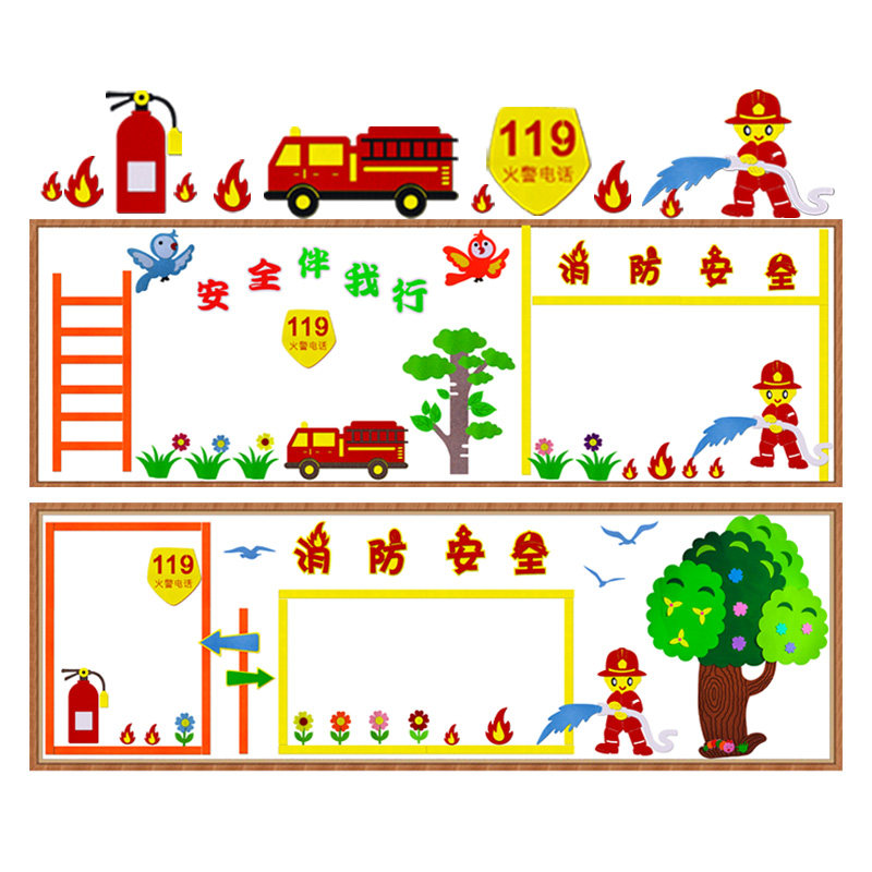119 Fire safety theme blackboard newspaper decorative wall stickers primary school fire prevention knowledge classroom environment layout cultural wall 1