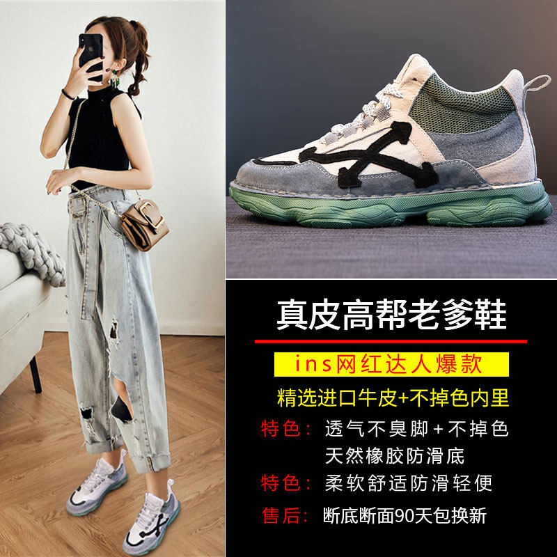 Tide Cards High Cylinder Old Daddy Shoes Woman 2022 Spring Autumn New footfall small non-slip breathable Fashion casual 100 lap women's shoes