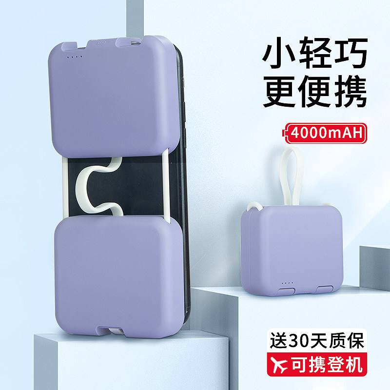 Mobile charging ultra-thin small portable own line suitable for Huawei Xiaomi Apple special mini back clamp type integrated charging large capacity 11 mobile phone outdoor 12 small punching electric universal belt data line