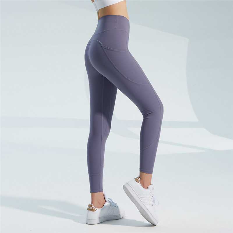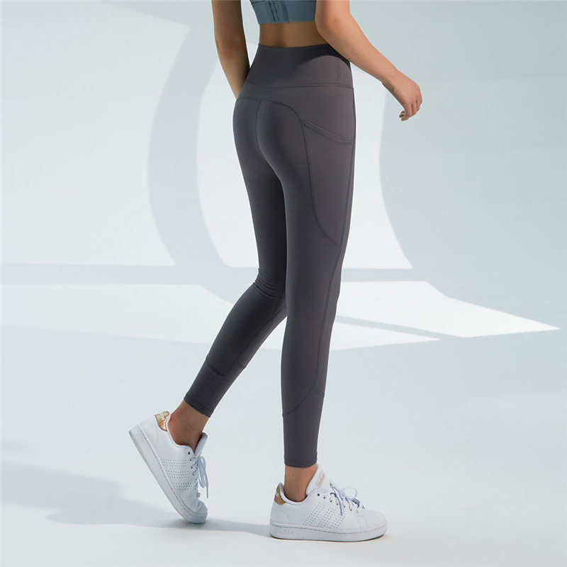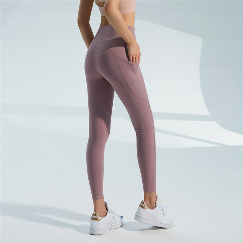 High waist wrap yoga pants Large pocket slim hip fitness pants Nylon stretch skin-friendly running training pants