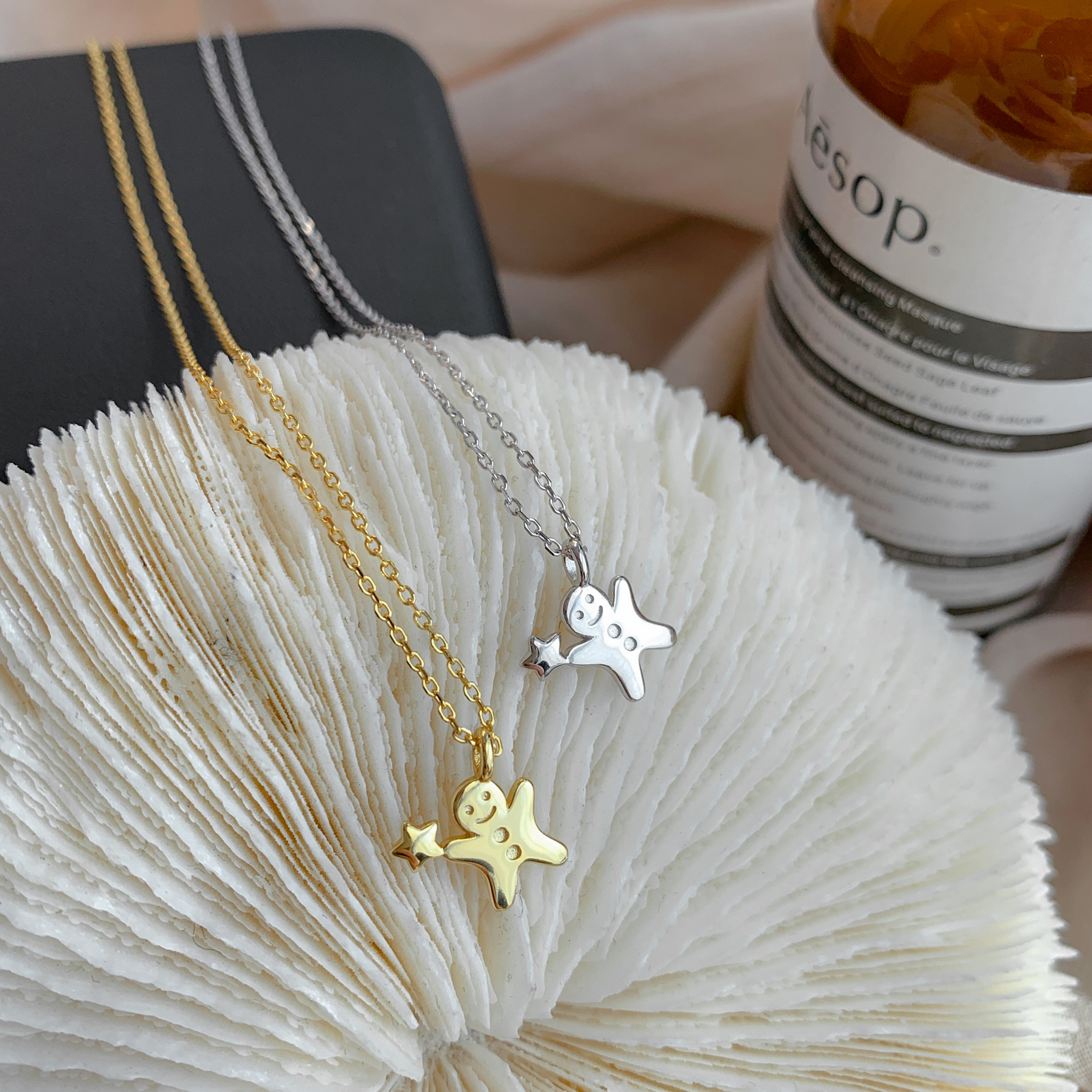 For Late Creative Gingerbread Man Pendant Mesh Red Silver Necklace Woman Lock Bones Chain Ins Little Crowdtalk Cute Temperament Necklace