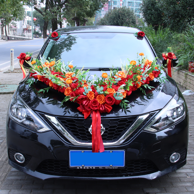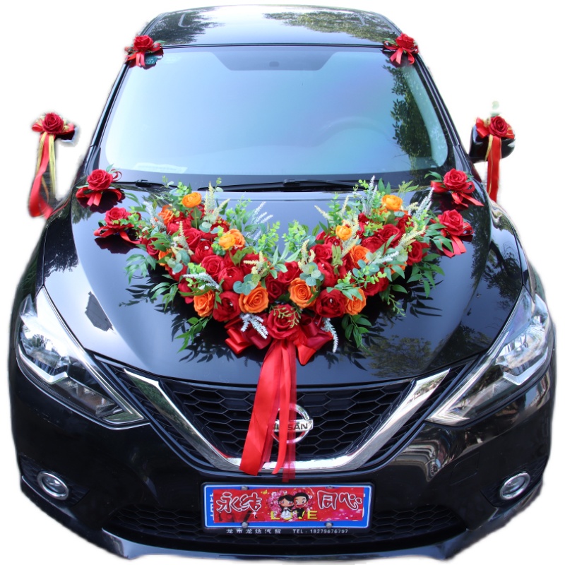 Forest big V main wedding car decoration front flower set float layout personalized suction cup wedding celebration supplies set