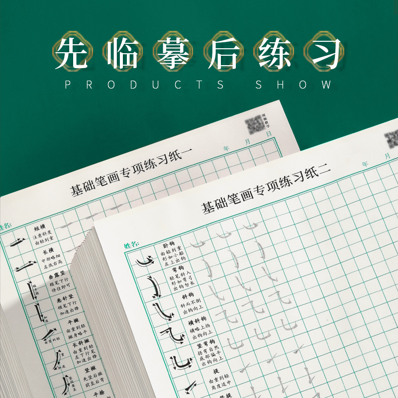 Tian Zi Ge Practice Character Book Hard Pen Calligraphy Special Paper Basic Stroke Stroke Stroke Stroke First Grade First Grade Brush Green Eye Protector Child Adult Meter Grid First Grade