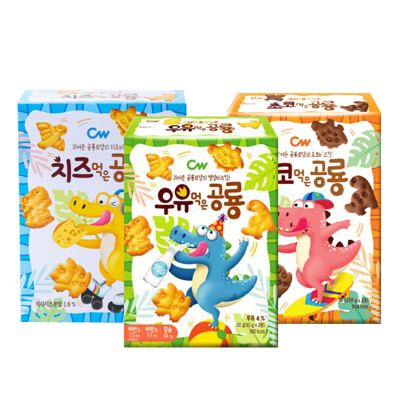 South Korea imported snacks CW Qingyou brand dinosaur-shaped milk biscuit chocolate cheese flavor children's leisure movement 60g
