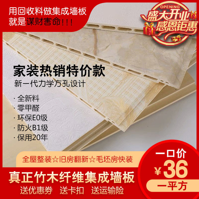 Bamboo Wood Fiber Integrated Wall Panel Integrated Wall Tooling Stone Plastic Waterproof Environmental Protection Quick Fit Wall Panel Suspended Ceiling Full House Full House