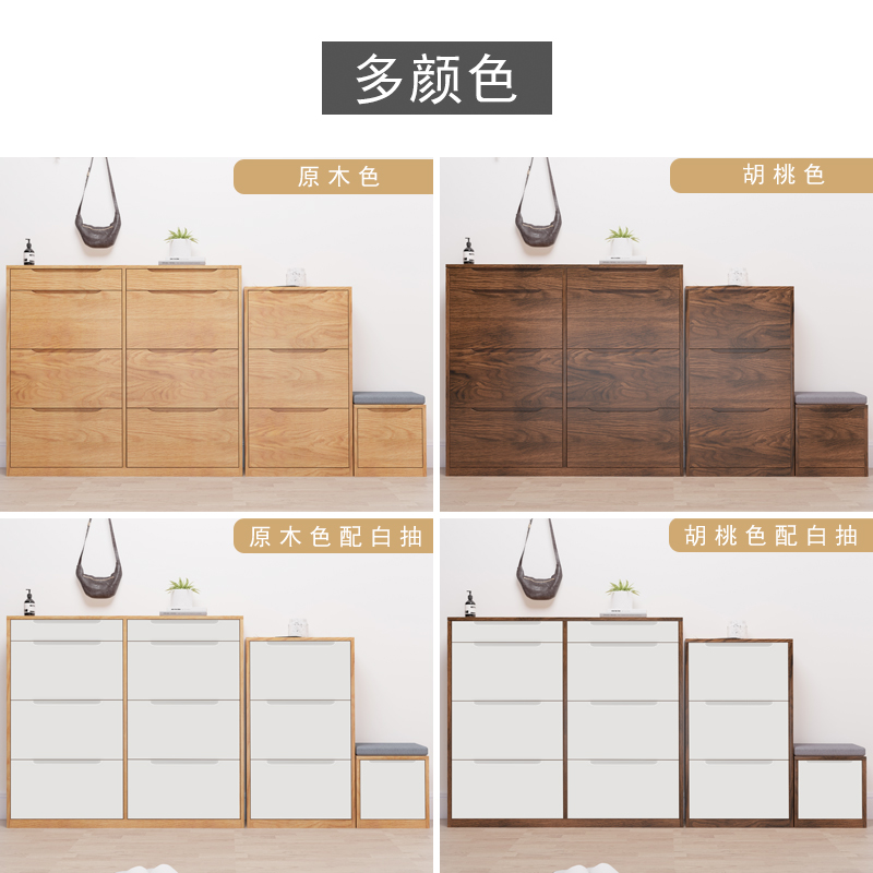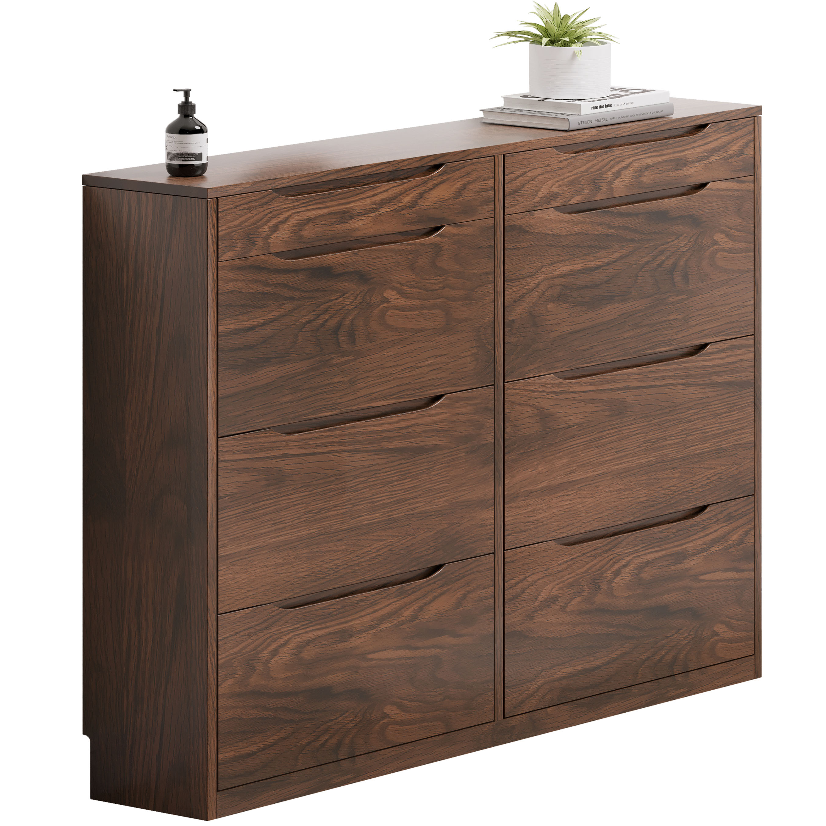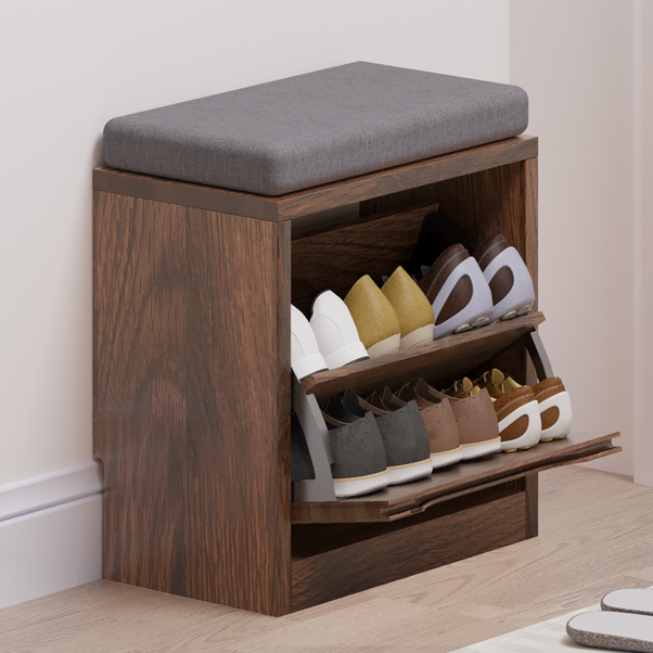 Oak Wood Walnuts Wood Color Flipper Shoe Cabinet With Oak Wood Color Flipper