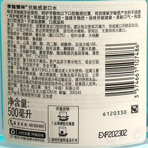 Lischling anti-sensitive mouthwash 500ml * 3 bottles = 1500ml antibacterial and mothproof gums bright white fresh breath
