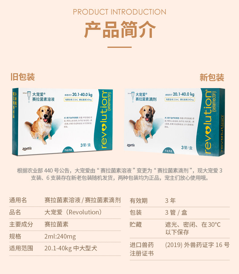 Big pet large dog dog Labrador golden hair internal and external insect repellent selamectin solution medicine 20 kg