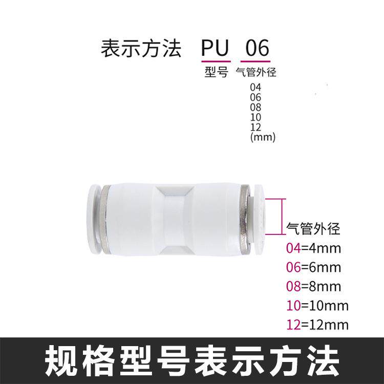 Pneumatic white quick-plug equal-diameter straight-through PU-4 6 8 trachea joint PG variable diameter 8-6-8 12-10