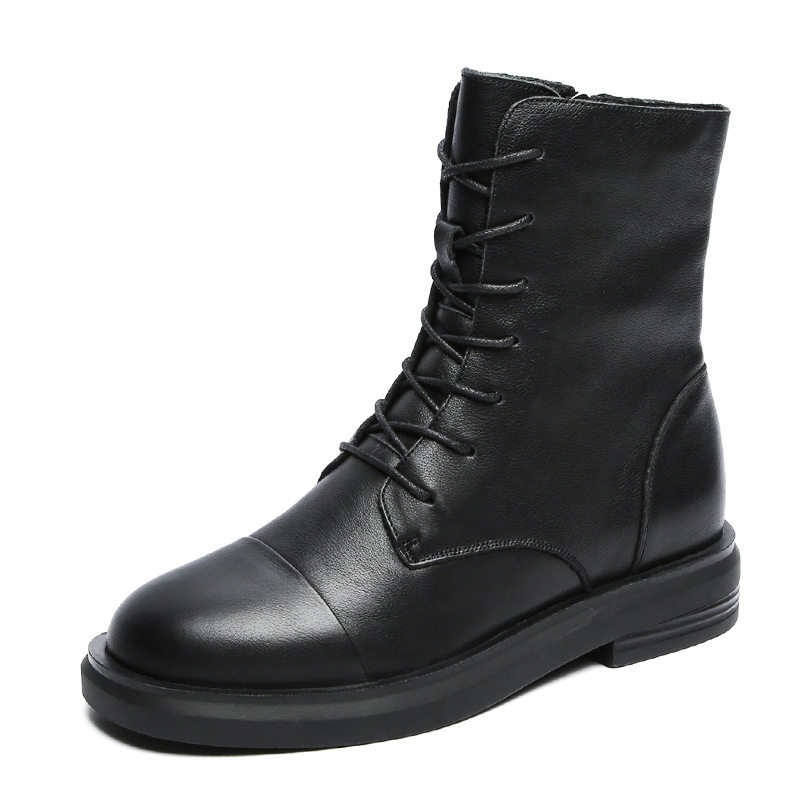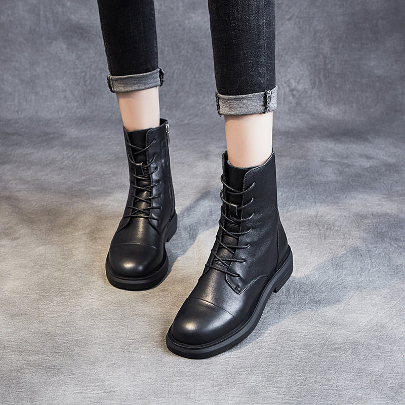 Genuine leather Martin boots woman 2022 autumn winter new soft underhead layer soft cow leather shoes lacing casual high cylinder short boot tide