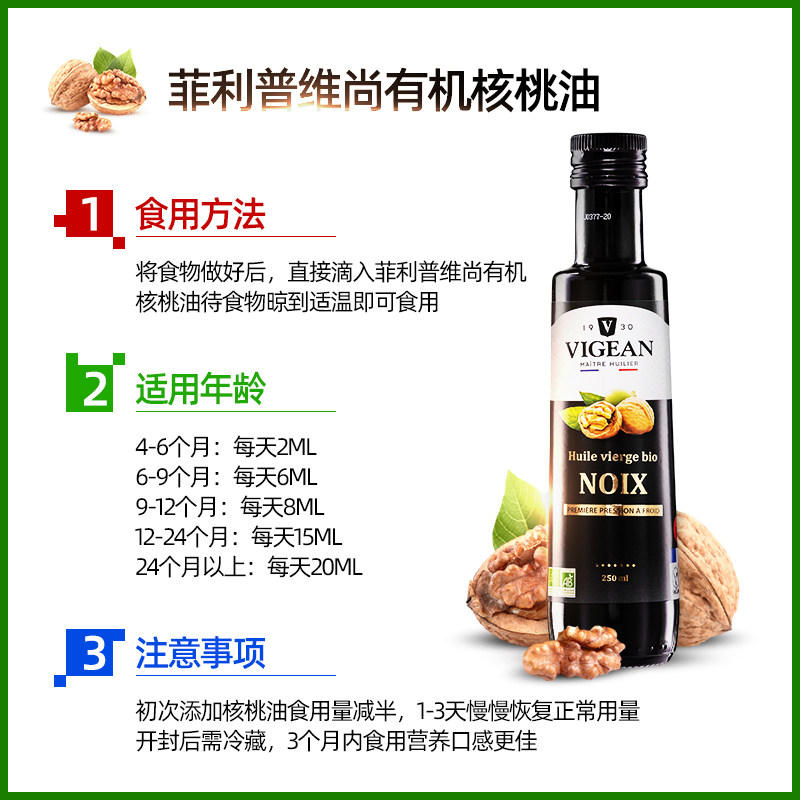 Philip Vishan France imported Central European and French triple Organic walnut oil Edible oil supplement 250ml*2