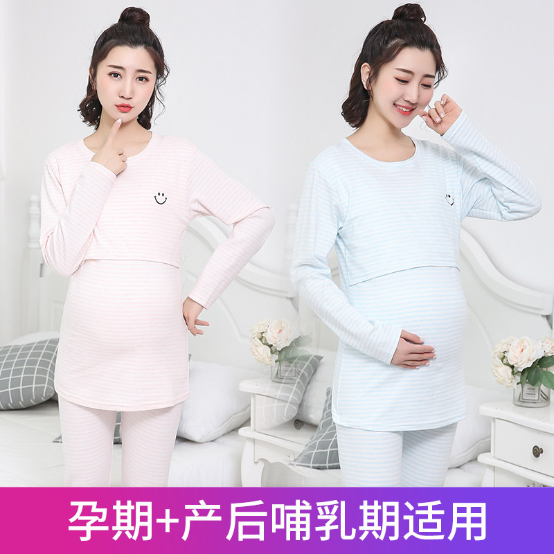 Pregnant women autumn clothes Sanitary pants set Cotton sweater Pregnancy month clothes postpartum nursing pajamas Autumn and winter fever clothes