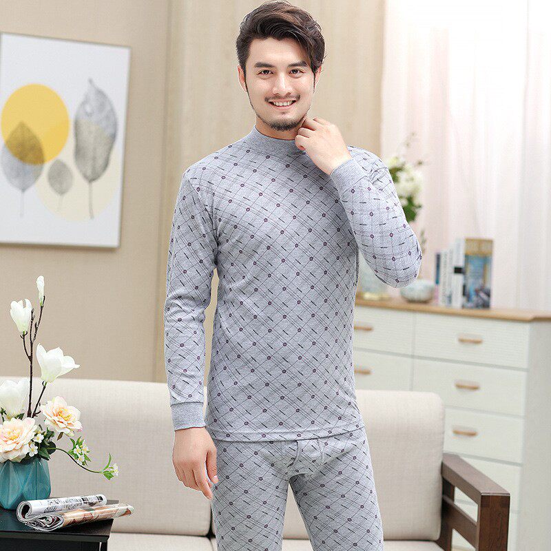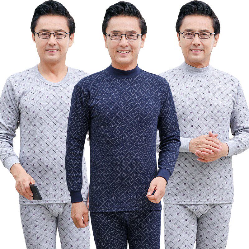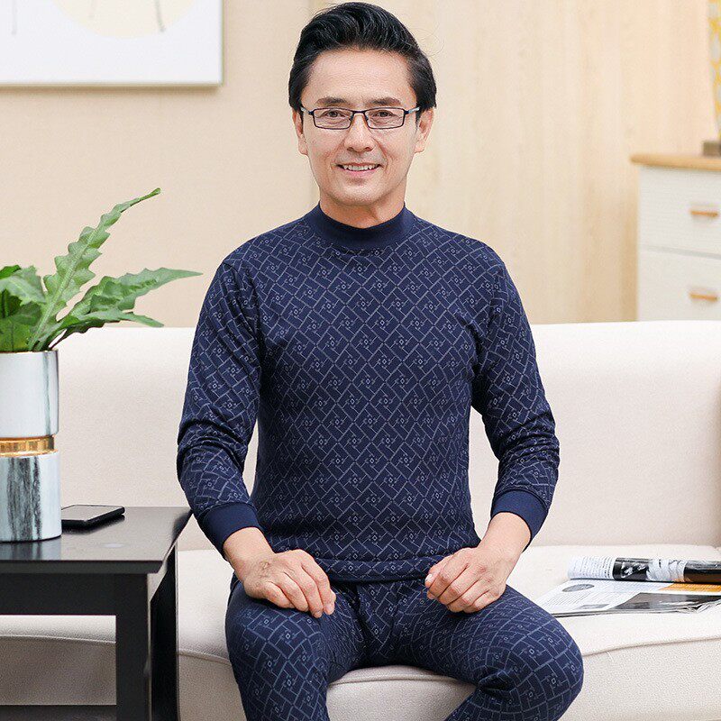 New Autumn Winter Men's All-cotton Autumn Clothes Sanitary Pants Seniors Beating Bottom Pure Cotton Sweatshirt High Collar Home Pyjamas Middle-aged Suit